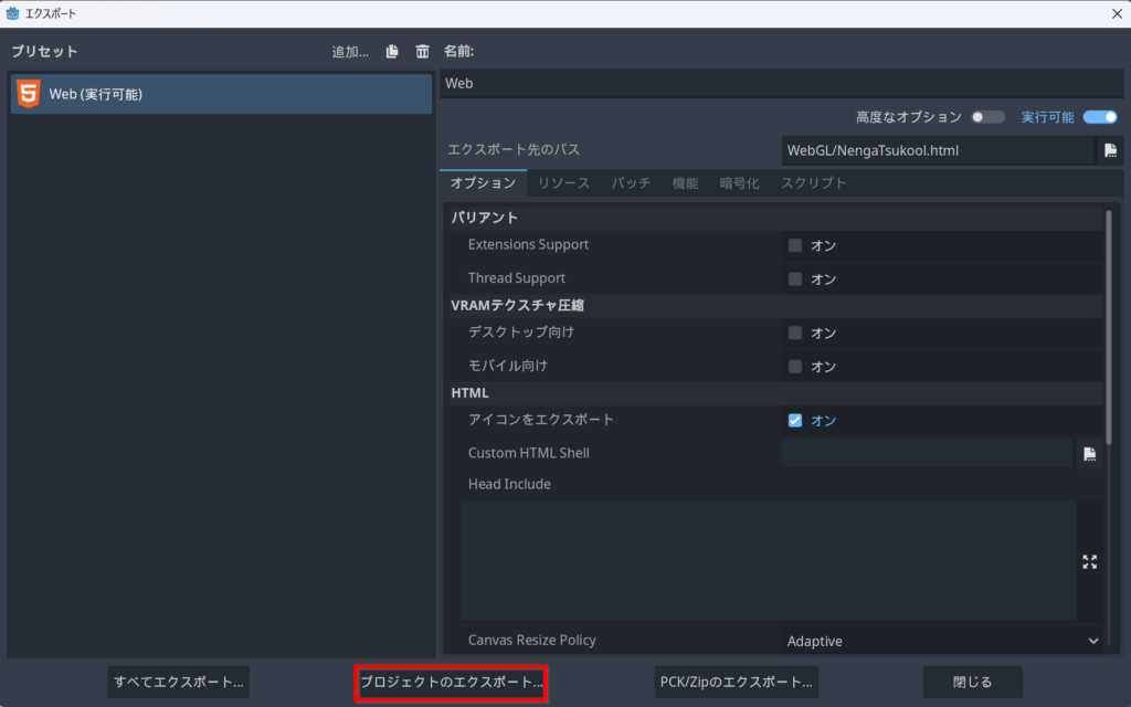 ちなみにGodotでのビルド方法は別サイトで検索すれば出てきますが、