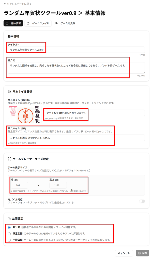 ※ちなみに、現在はゲームを登録は自由にできますが、登録したゲームを削除することはできないようです。(2025/12/15)なので、あまりテストゲームみたいなものを作りすぎると管理しづらくなるかもしれません。